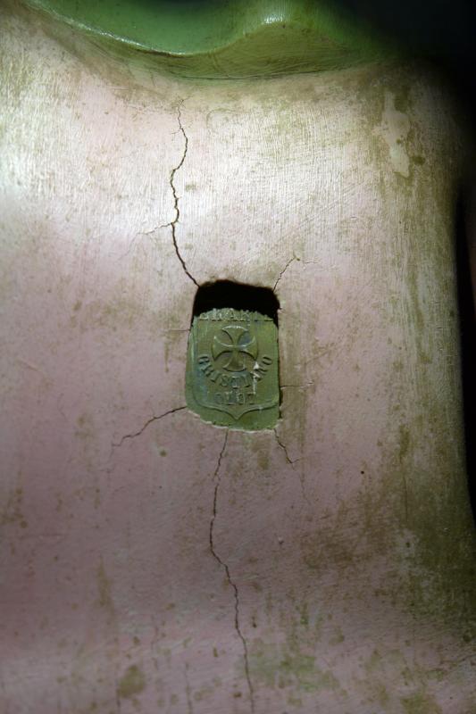 El sello del taller olotino donde se fabricó muestra una cruz patada y la leyenda: EL ARTE (cruz) CRISTIANO. OLOT”.