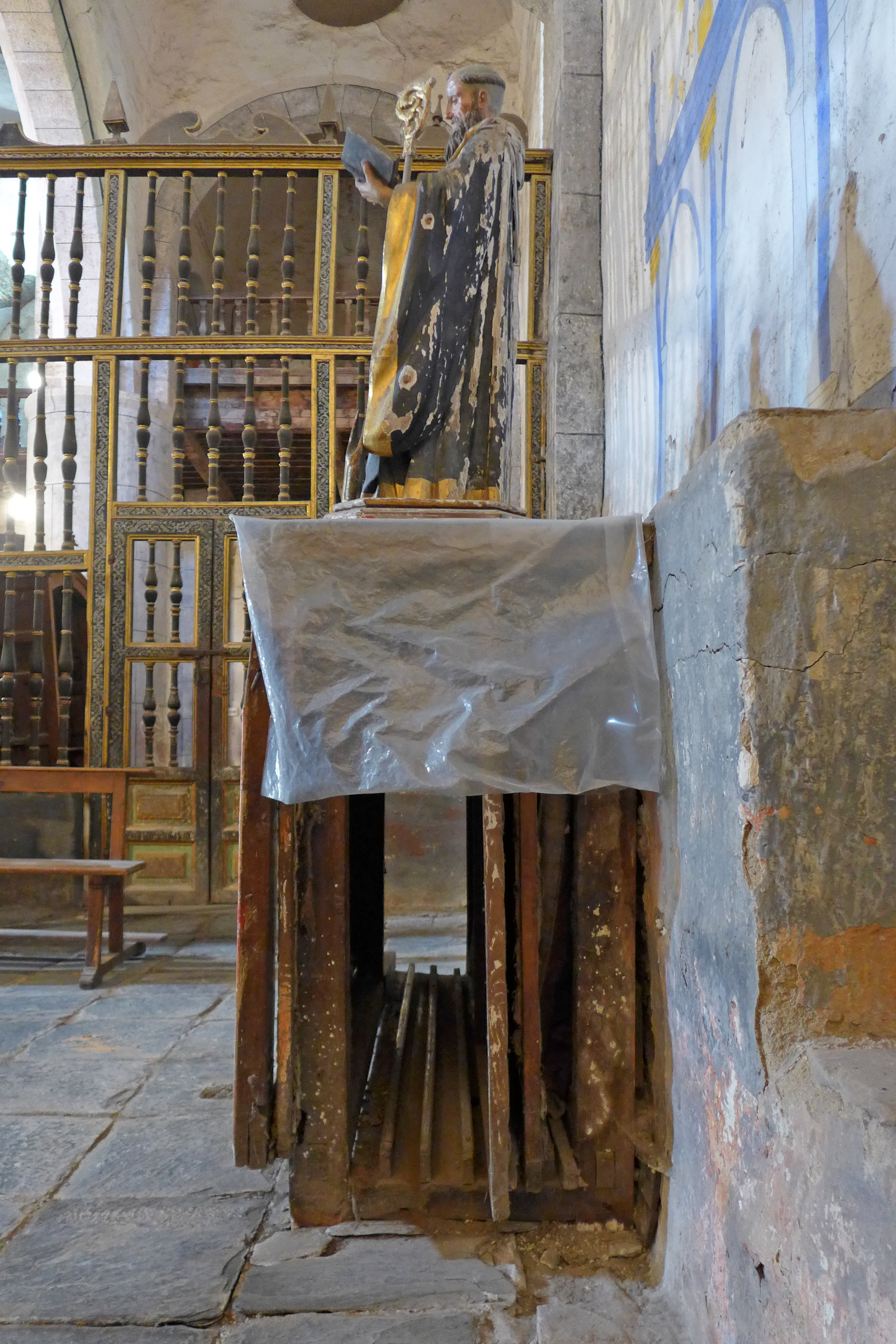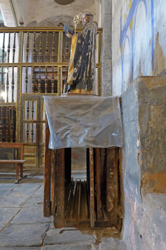A su vez, realiza funciones de mesa del retablo pintado que tiene detrás.