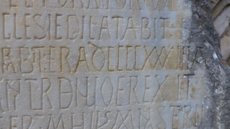 Inscripción conmemorativa del monasterio de San Pedro de Montes (réplica) |