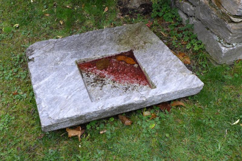 Está sometida a los agentes climáticos, en el suelo del atrio.