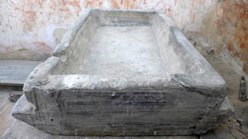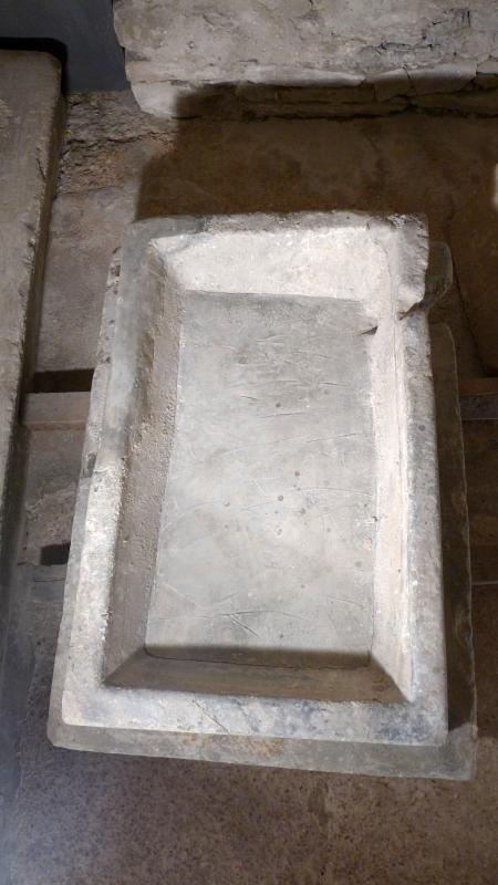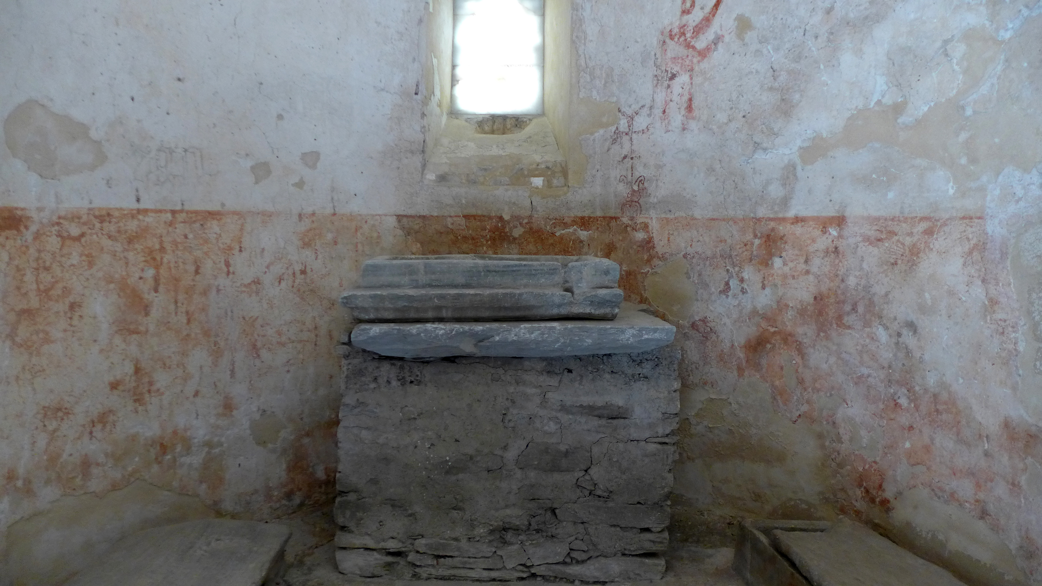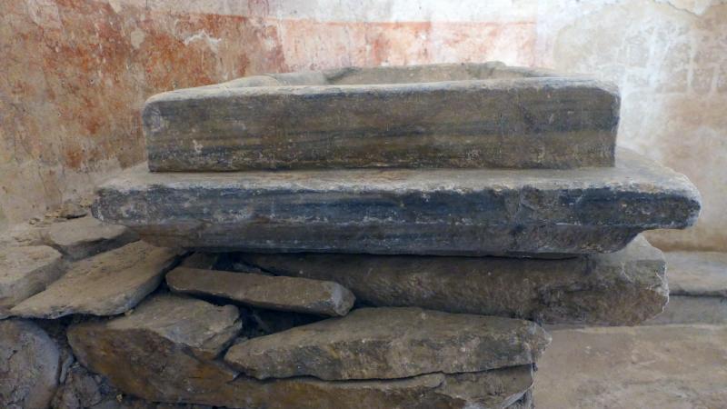 Quizá se trate una mesa prerrománica de altar o una pileta de uso incierto, tan utilizadas en la cultura musulmana, por lo que convendría instalarla en el altar mayor, sustituyendo al que actualmente hay. Sus características formales llevan a una pieza que debió labrarse entre los siglos VIII y X.