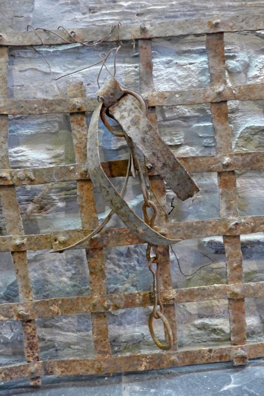 Aparente argolla, de hierro forjado, actualmente descompuesto en distintas tiras, unidas por un eslabón, con algunos otros unidos a este.