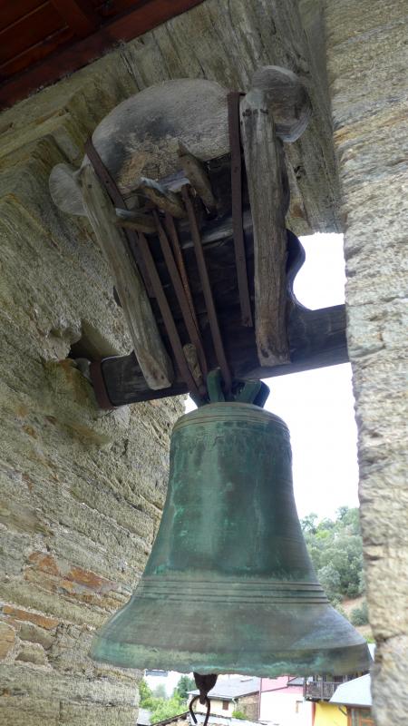 Campana de perfil esquilonado. Su tercio, que contiene la inscripción MARIA JOSE JHS, se enmarca por dos parejas de cordones. En el medio exhibe una cruz de calvario formada por moldes cuadrados en su pie y en los brazos y triangulares en los remates. Su pie se adorna con cuatro cordones. Conserva el badajo.