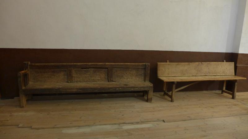 Mueble ubicado a los pies de la iglesia. Su sencillo aspecto va ligado a la funcionalidad de su uso. Ha perdido uno de los travesaños inferiores que refuerzan su estructura diagonalmente.