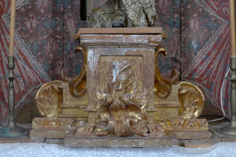 Pareja de soportes de movido perfil sobre los que hoy se alzan las imágenes de San Esteban y la Virgen de Folibar. Se componen de un dado central cúbico flanqueado por sendos aletones cargados de "ces" y tornapuntas. En el frente, sobre el cajeado del dado se aplica una tarja de vegetales carnosos. Todo ello se dispone, además, sobre una basa lisa, pero que se adapta al movido recorte de la pieza.