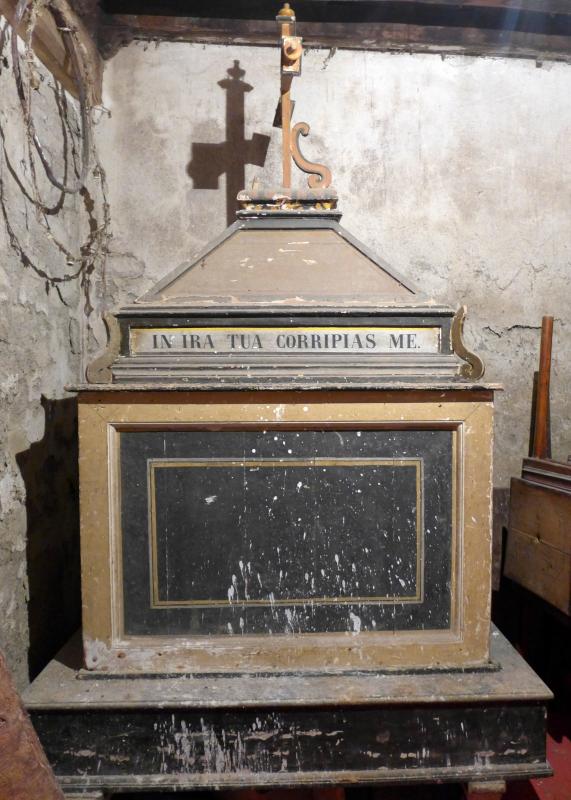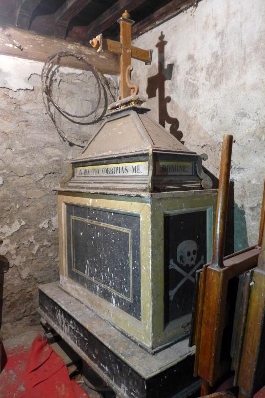 Catafalco de la cofradía de ánimas, concebido a modo de monumento portátil. Adopta forma turriforme, con varios cuerpos prismáticos superpuestos de manera decreciente. Sobre los dos primeros, rectangulares, se dispone otro troncopiramidal con cruz de remate. Lo reciente de su hechura explica la sencillez de su imagen, donde los elementos decorativos se limitan a algunos tornapuntas de talla en la transición de las piezas superiores. Salvo eso, el resto son molduras lisas y una policromía de lo más simple a base de tonos marrones y negro. En su parte superior corre una leyenda en latín alusiva a las Ánimas. En la actualidad carece ya de uso, aunque es una pieza de innegable interés histórico y antropológico.