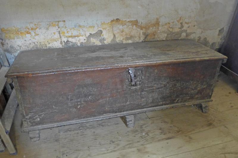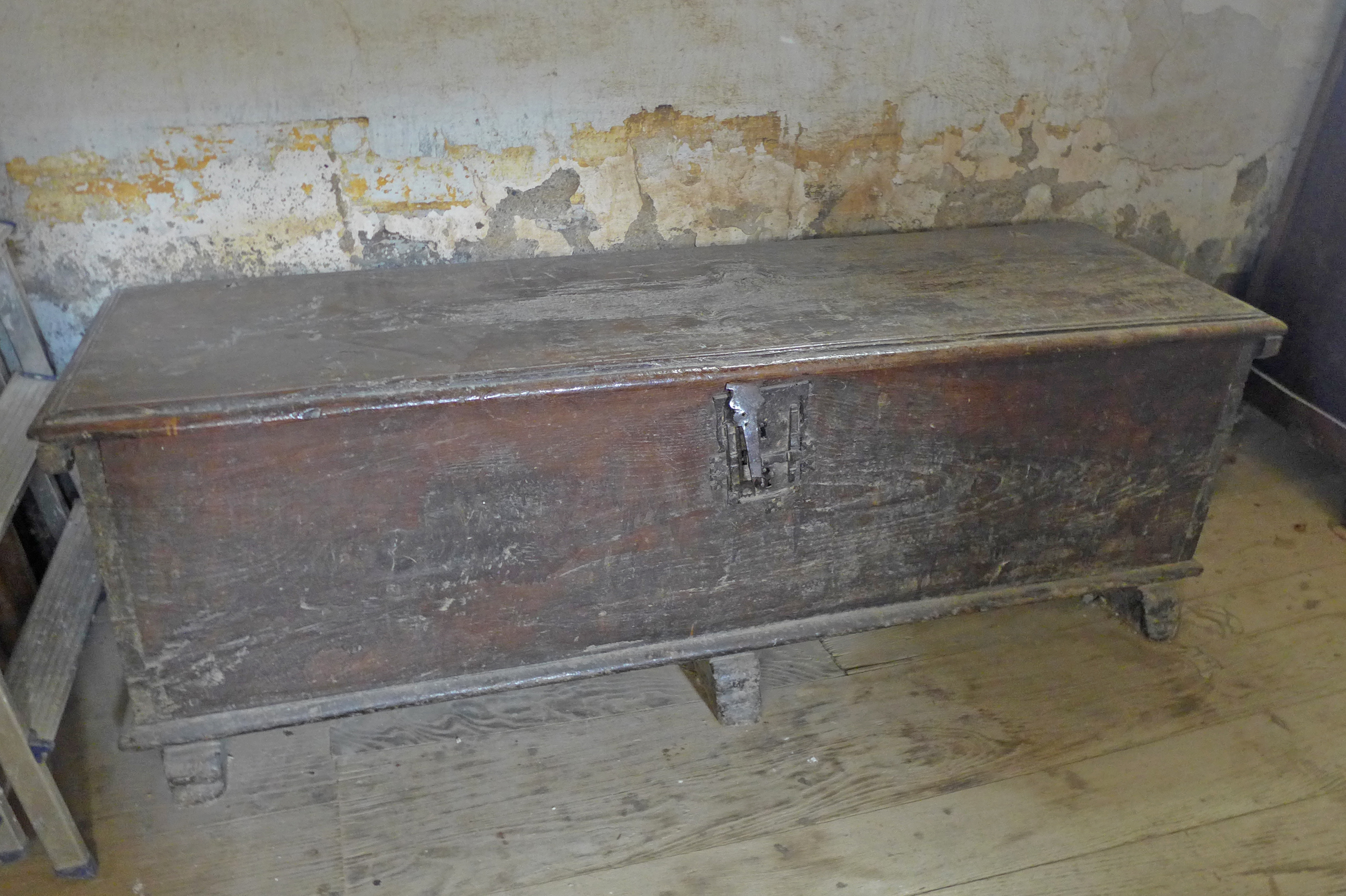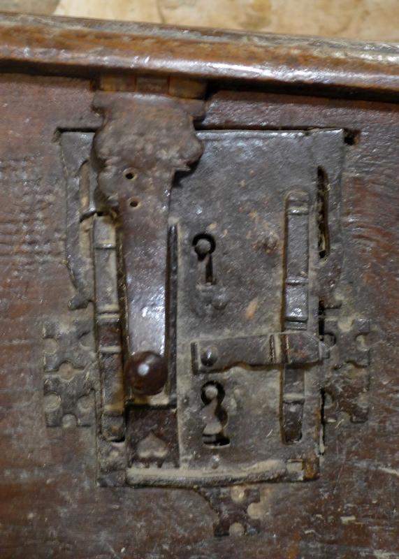Mueble de forma prismática y base rectangular en el que se debieron guardar algunas vestiduras litúrgicas o papeles de la parroquia. Se sustenta sobre tres pata de cabeza lobulada y se cubre con una tapa abatible de borde moldurado. Conserva su cerraja original que, para su apertura, necesitaba de dos llaves distintas.
