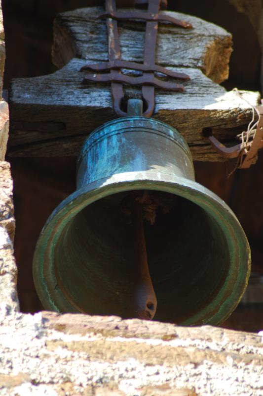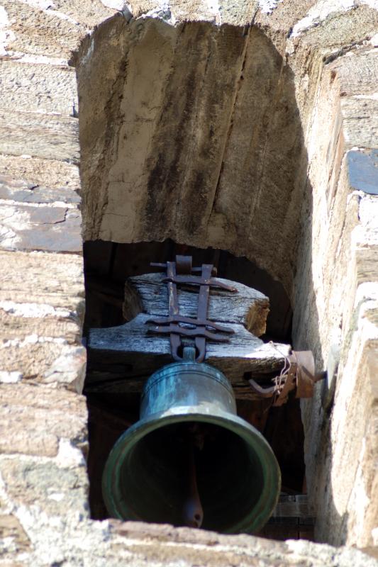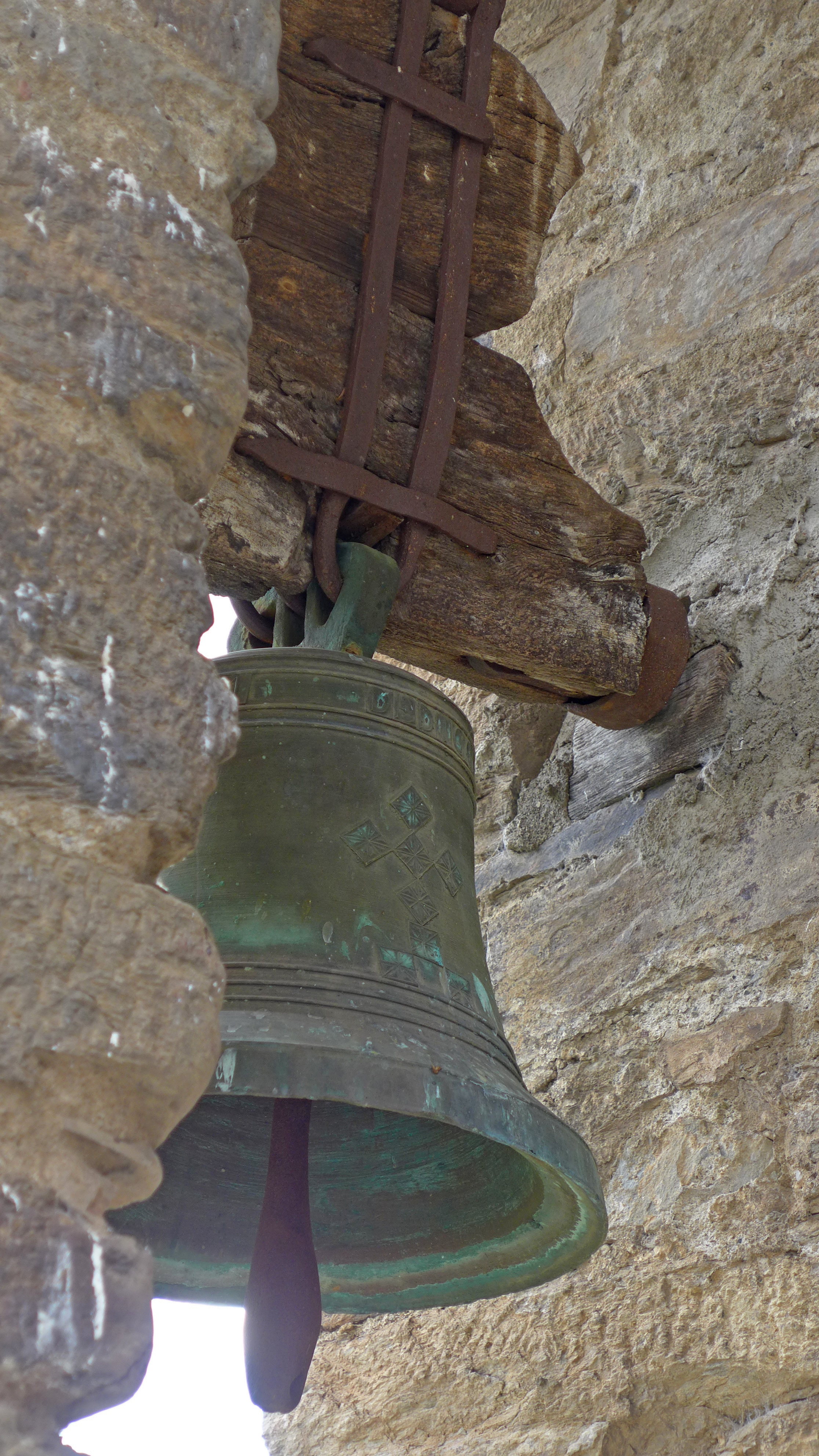 Campana de perfil esquilonado. Su tercio, que contiene la inscripción de dedicación, se enmarca por dos parejas de cordones. En el medio exhibe una cruz de calvario formada por moldes cuadrados en su pie y rombales en los brazos. Su pie se adorna con tres cordones. Conserva el badajo.