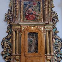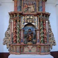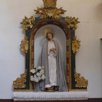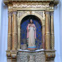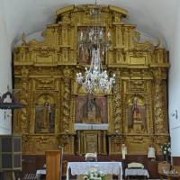 Los tres tramos de su nave rectangular conservan un interesante conjunto retablístico, fechable entre los siglos XVII y XVIII, a mayores del sobresaliente retablo mayor, donde entre tallas barrocas llama la atención la Virgen de Folibar, imagen medieval traída desde la arruinada ermita de su nombre.
