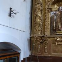 Engaña su sobriedad exterior pues otrora contó con varias capillas y espacia adosados hoy desaparecidos. Aunque toda ella se levantó en mampostería su portada, de sillería, conserva molduraciones aparentemente labradas en el tránsito del gótico al renacimiento.