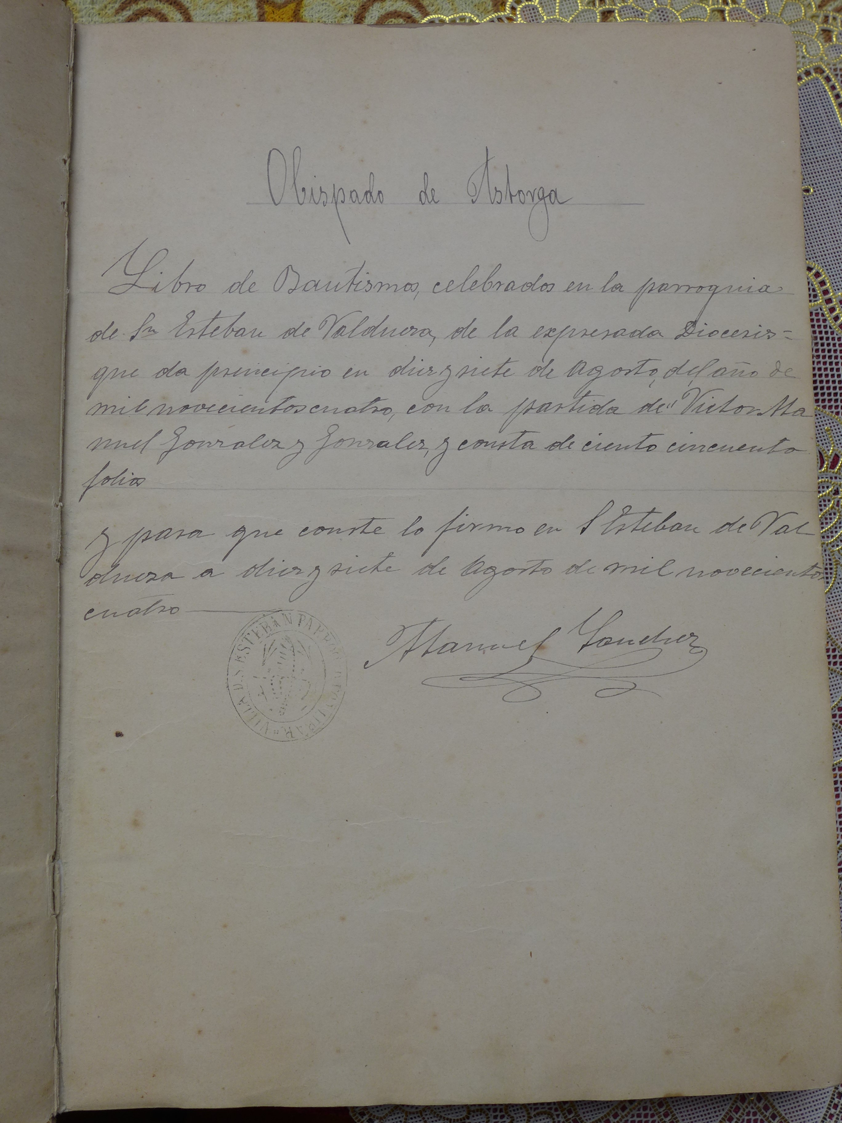 Libro de bautizados de San Esteban de Valdueza