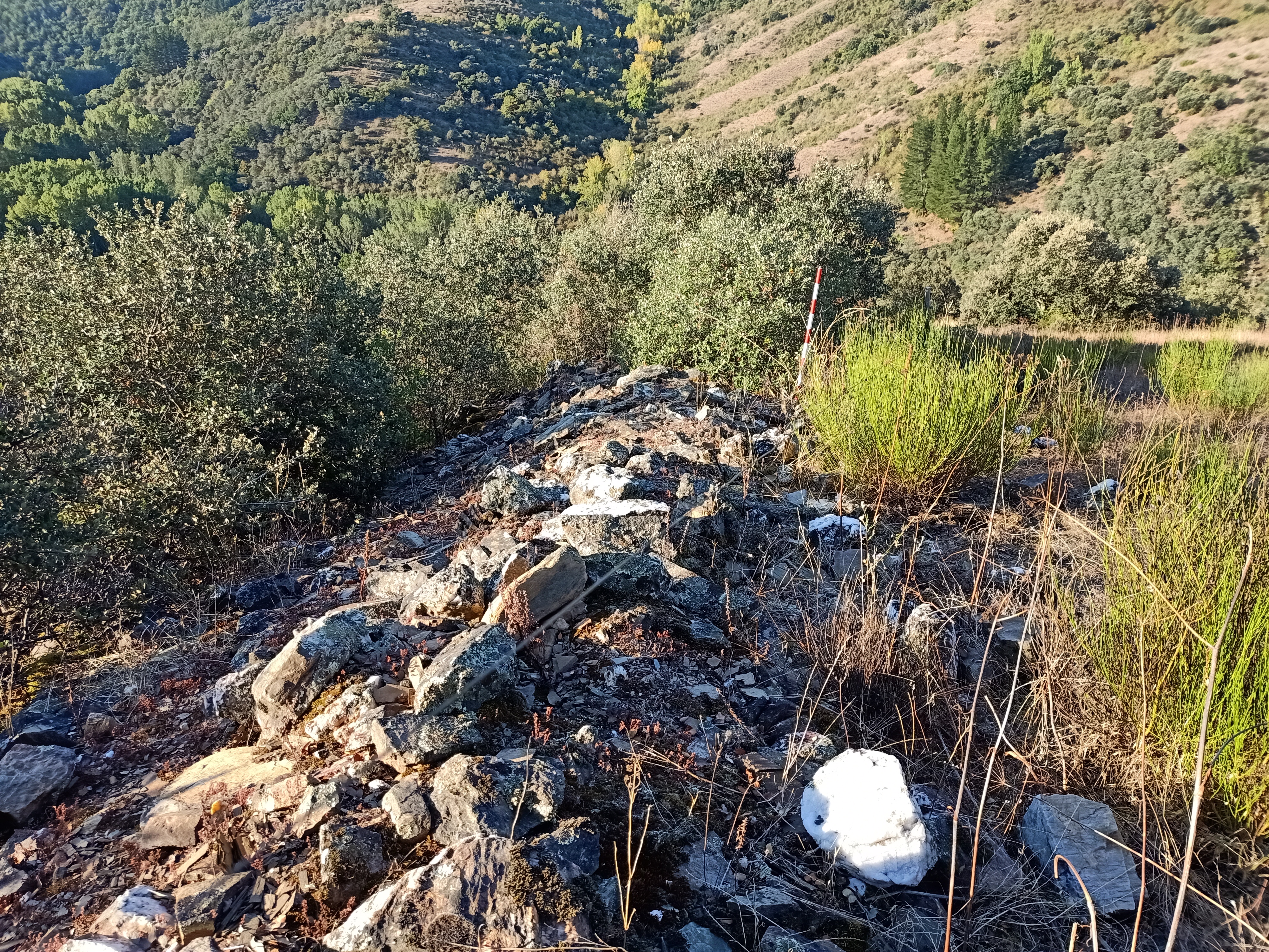 Foso y muralla al norte que lo protege en la zona de ascenso de la ladera.