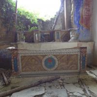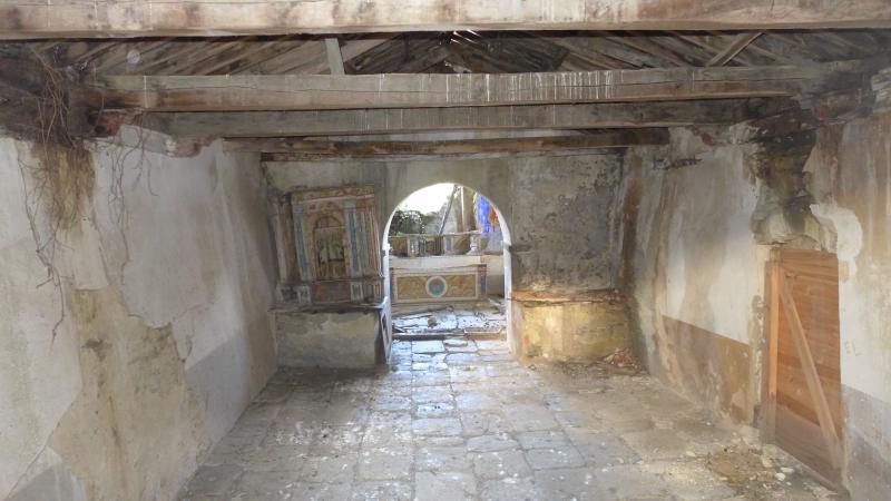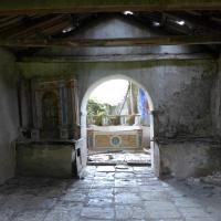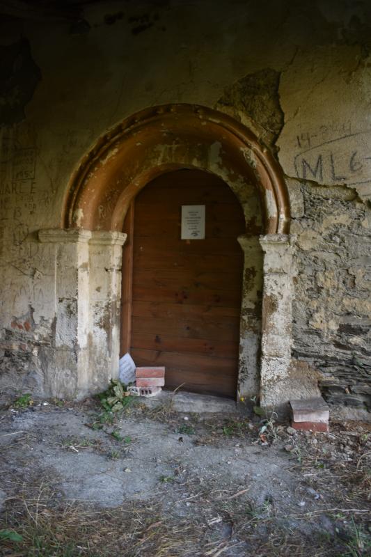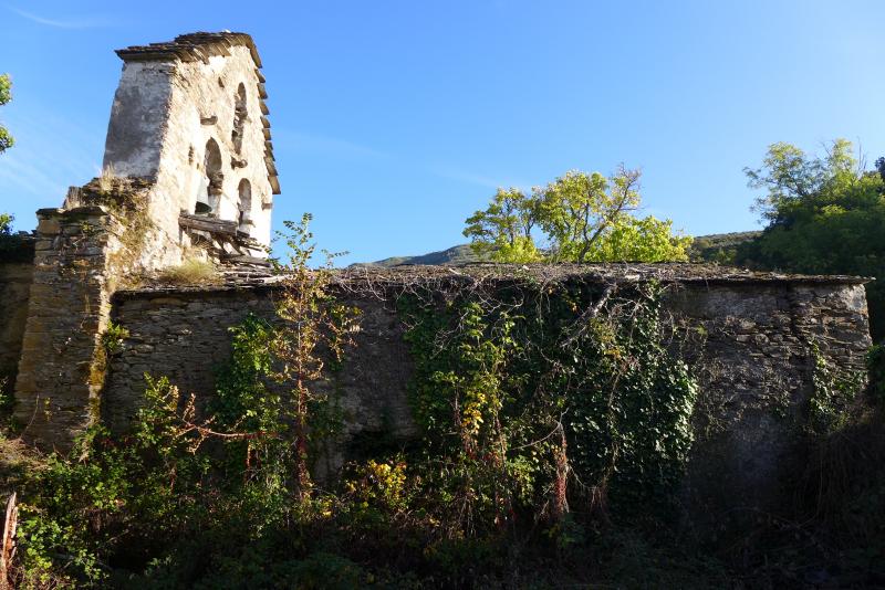 Levantado en el siglo XVIII, con un sencillo pórtico al sur que protege su portada de caracteres románicos, todavía alberga restos de la armadura de su cabecera, un par de retablos, la mesa de altar, y pinturas murales. Por suerte, en su espadaña se mantienen sus dos campanas y su campanillo, cada una en su correspondiente tronera.