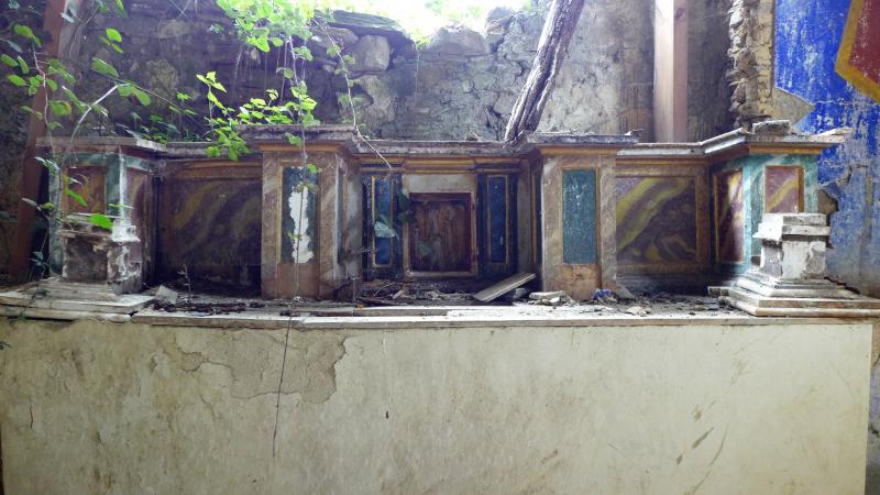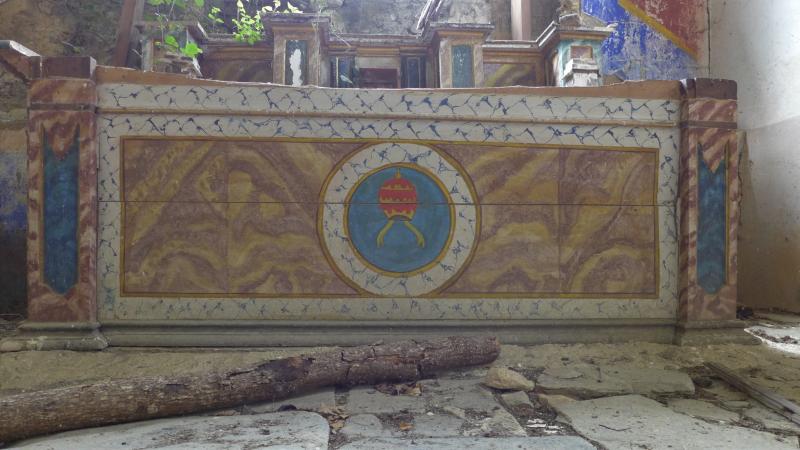Queda únicamente el basamento y frontal con emblema de San Pedro. Las medidas arribas expresadas corresponde a la mesa. El basamento mide 60 x 285 cm