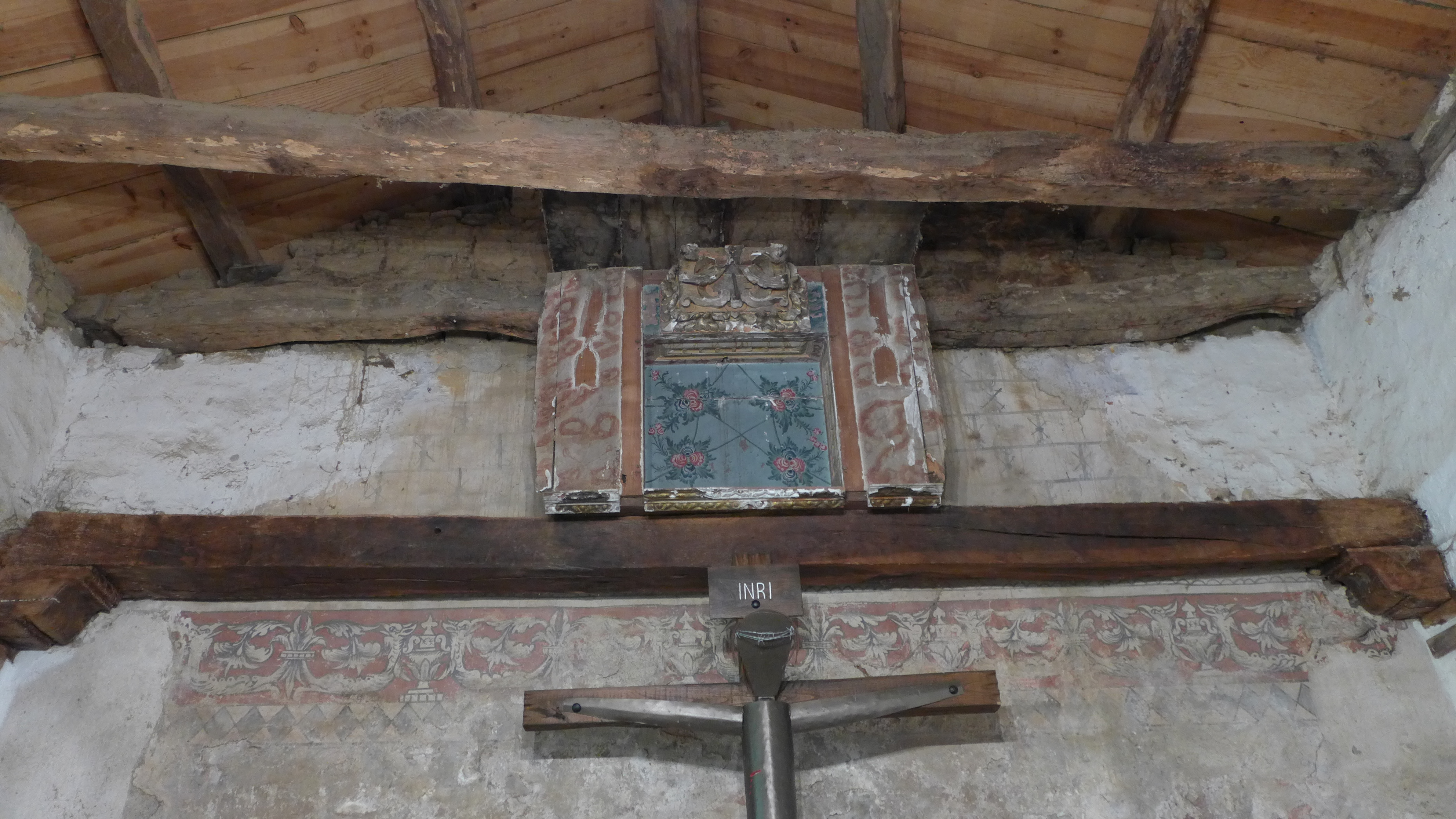 Es una pequeña parte del retablo mayor. El resto está en la sacristía. Parece que ha sido desmontado por un vecino del pueblo