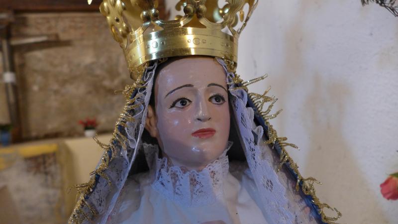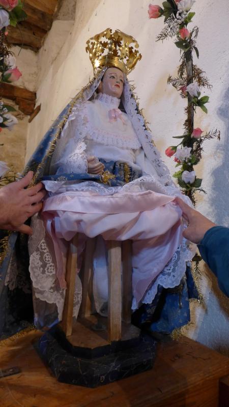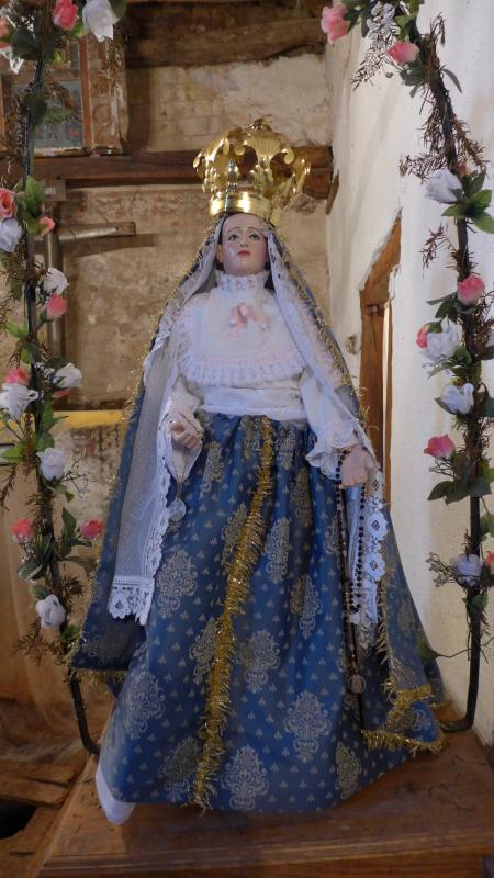 Virgen vestidera de factura moderna y, aún así, repintada grotescamente no hace demasiado tiempo. Como todas las de su clase únicamente tiene de talla las manos y la cabeza, pues el resto es un armazón preparado para colocar el pertinente ajuar. Se asienta sobre una base jaspeada octogonal. Su rostro, de facciones escasamente esbozadas, muestra ojos de pasta vitrea. Su ajuar, como la propia talla, es moderno y, al menos en la actualidad, no conserva ninguna pieza de plata.