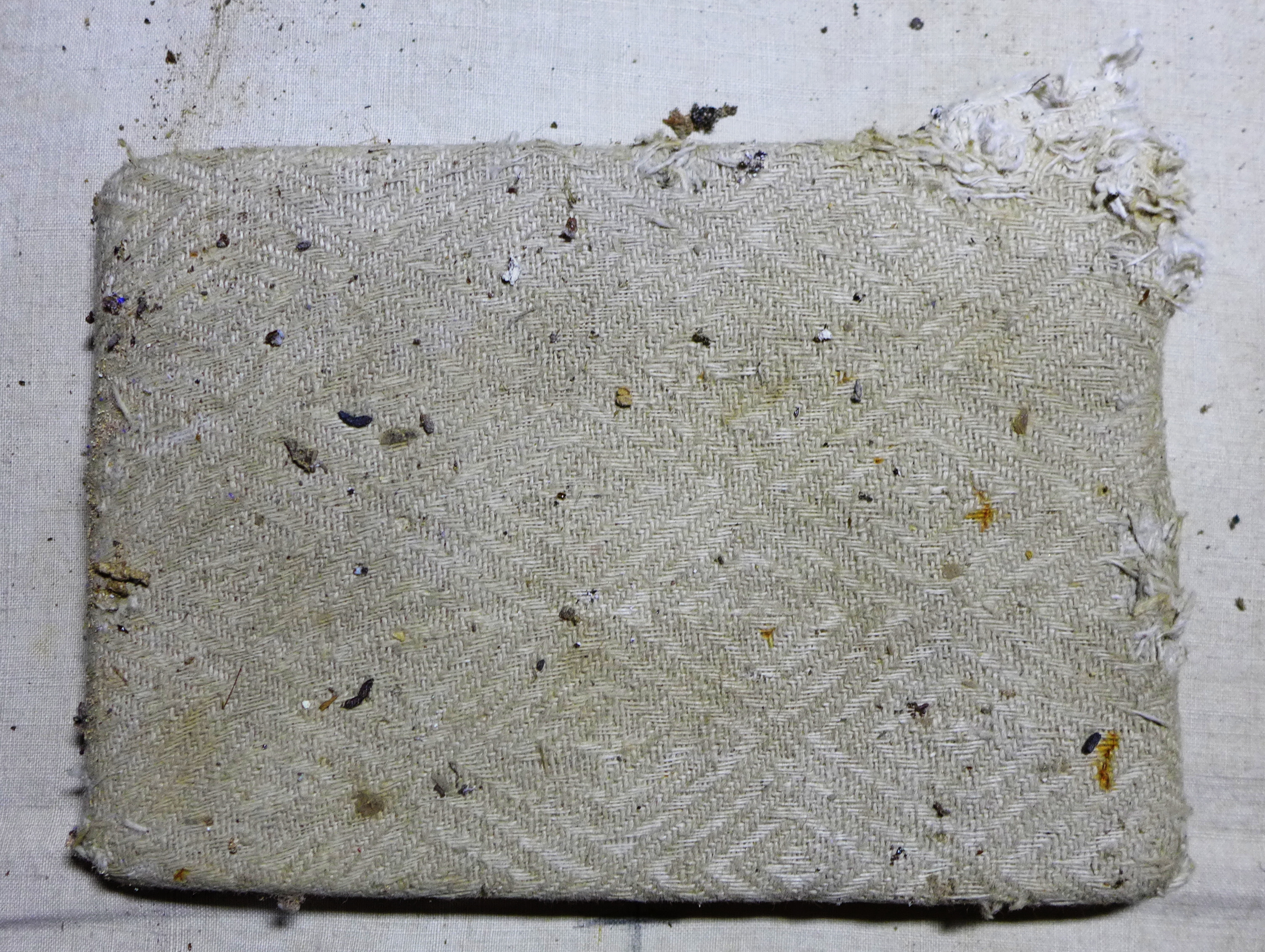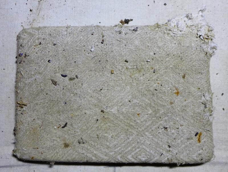 Cubierta por un textil cosido y bordado, que no es el tradicional lienzo