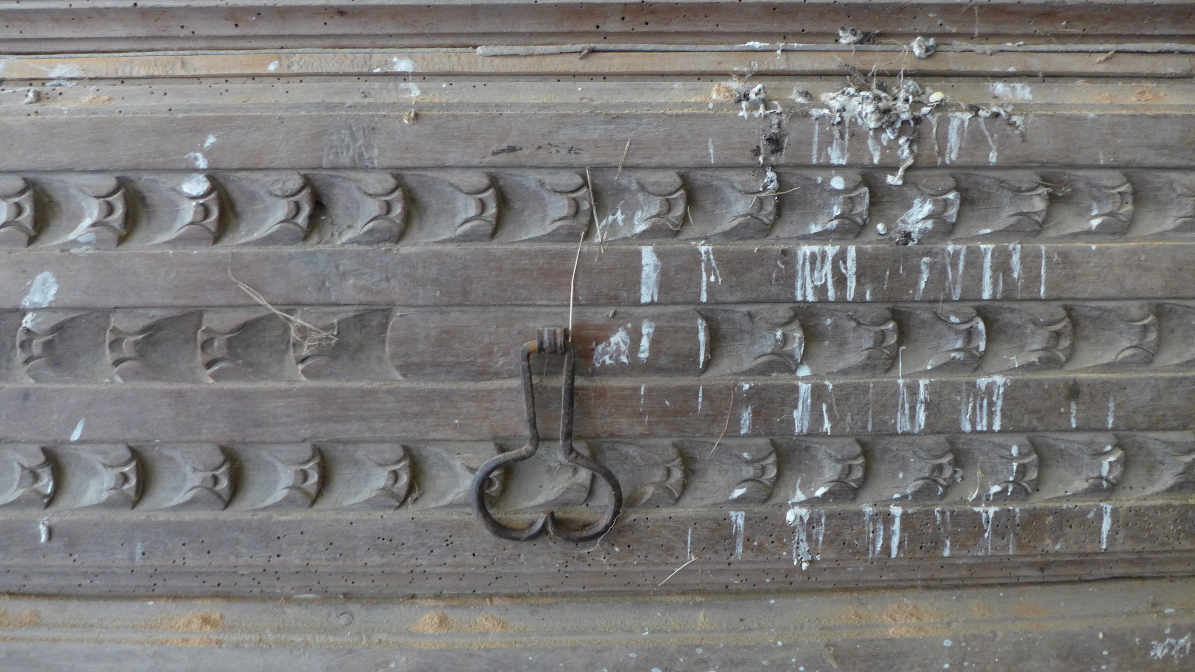 Cada cajón dispone de dos tiradores de forja (perdido uno del cajón inferior) acorazonados, para facilitar la introducción de los dedos.
