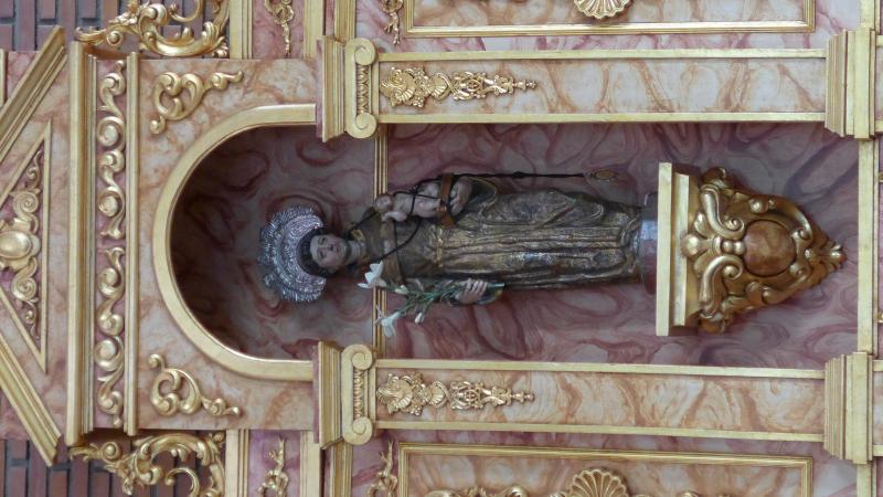 San Antonio porta un nimbo metálico, posterior. No así el Niño, rubio, sin nada en la cabeza.