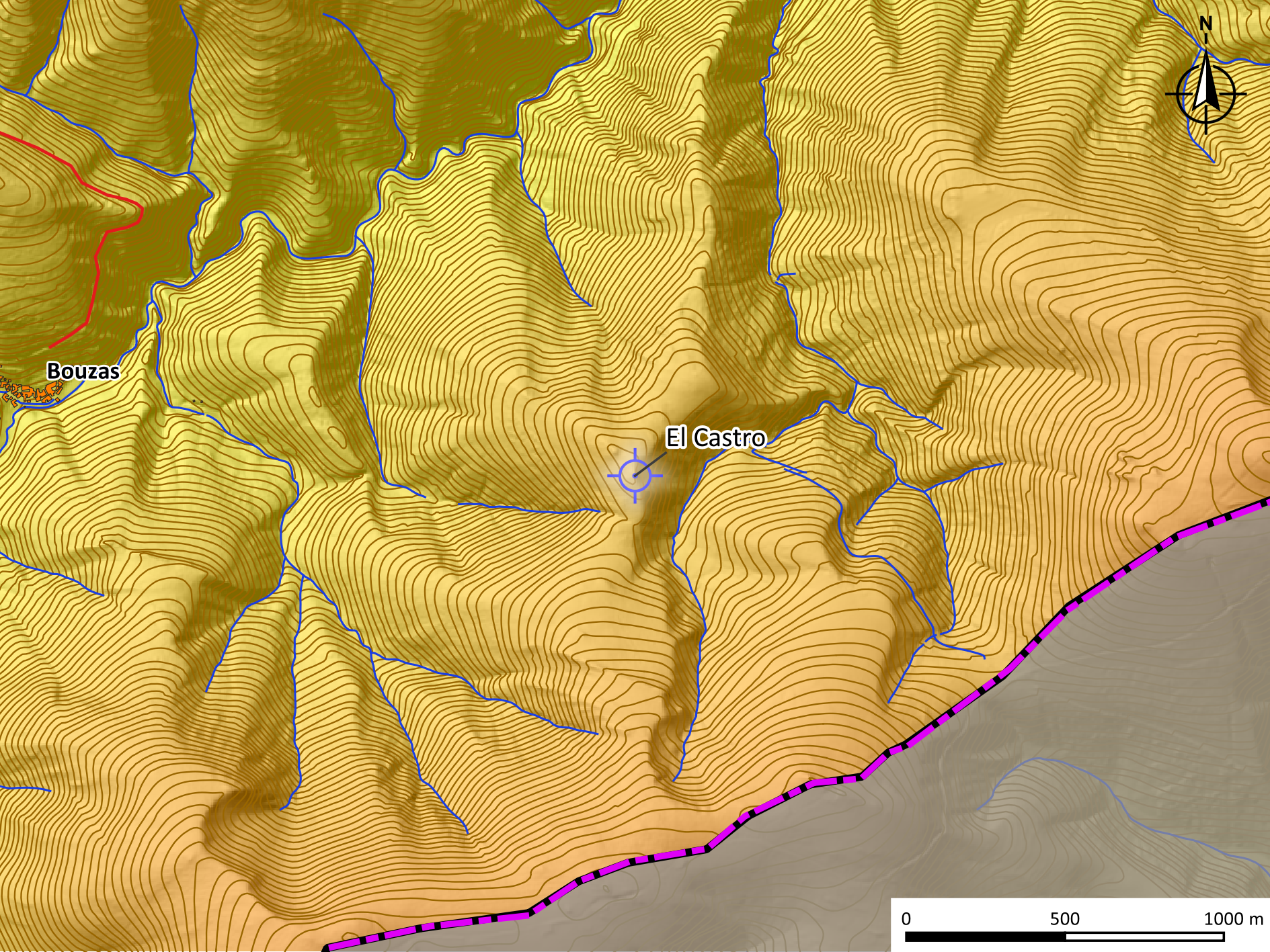 Cima de monte al sureste del pueblo de Bouzas. Sin evidencias de actividad antrópica antigua.