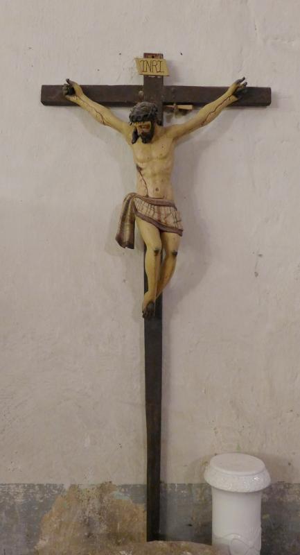 Cristo crucificado que sigue modelos barrocos. Inclina la cabeza hacia la derecha. Luce un paño de pureza corto y policromado, recogido en el costado derecho. El tratamiento anatómico es muy discreto.