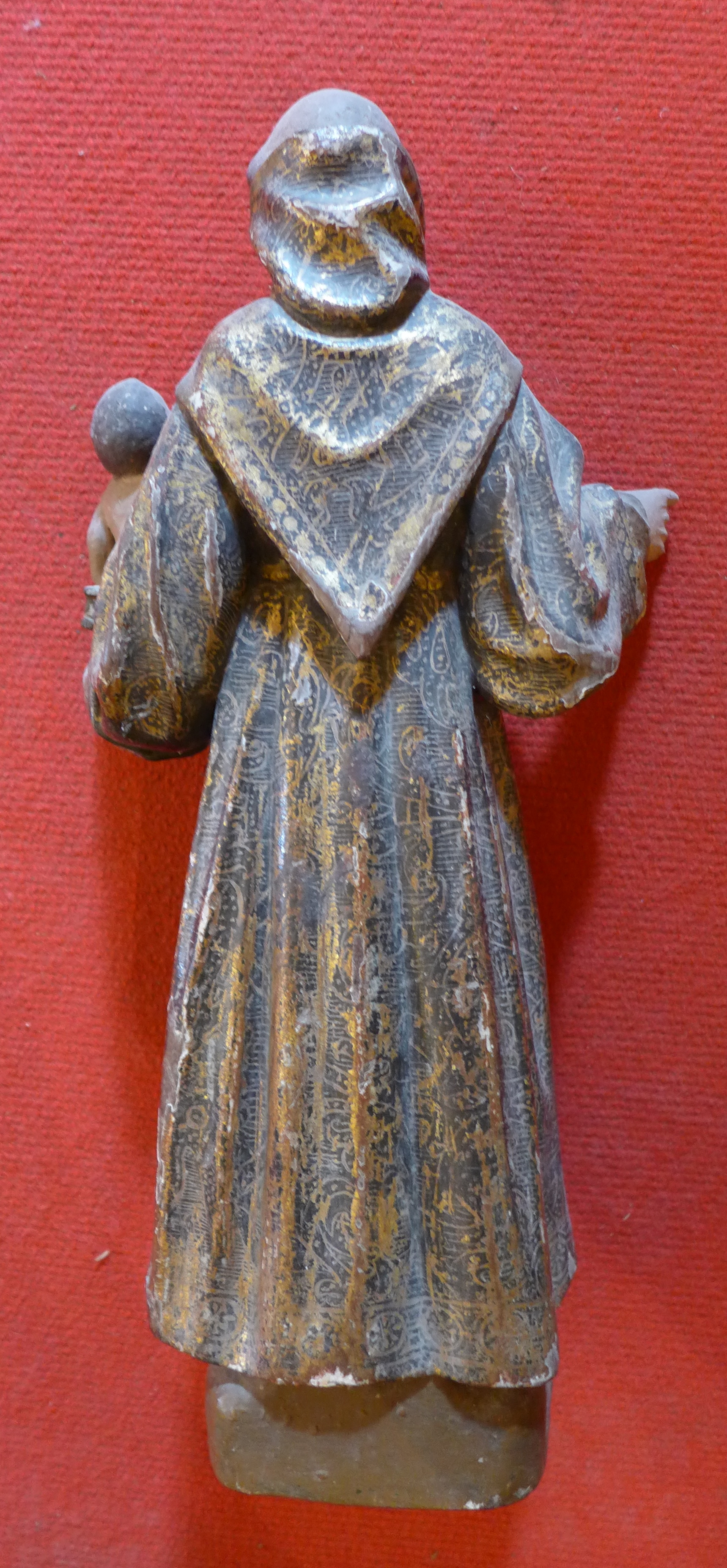 Toda la talla se adorna con estofados de pincel.