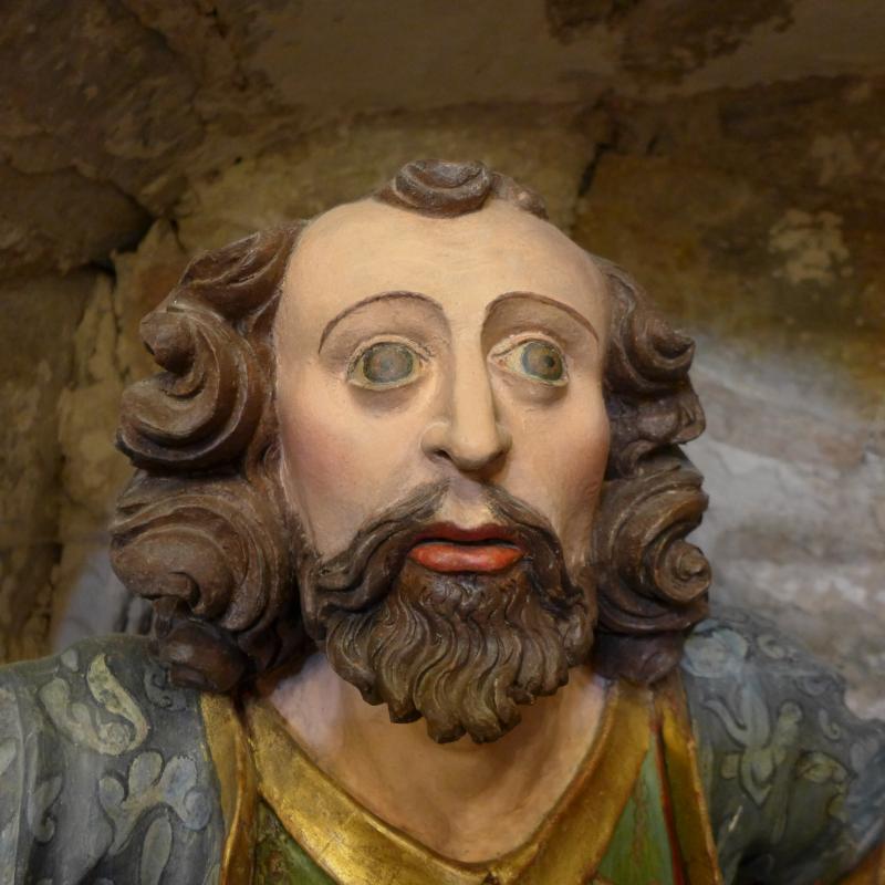La parte más sobresaliente de la pieza son los lujosos ropajes, eficazmente reforzados por la policromía.