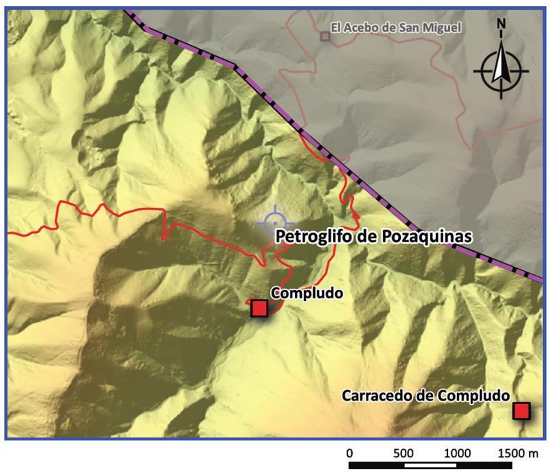 El lugar donde se ubica este petroglifo es una zona aterrazada en la ladera, conocido como Era de las Pozaquinas. Referencias orales indican que era un lugar habitual de pastoreo del ganado.
