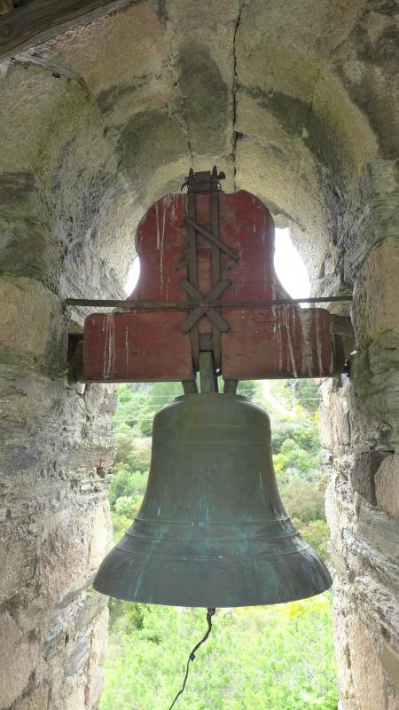 Campana de perfil esquilonado. Su tercio se decora con dos cordones, y el medio pie con otros tres. En el medio exhibe el nombre del fundidor, donde consta la fecha de fundición. Conserva el badajo. El yugo es de madera, y está mecanizada.
