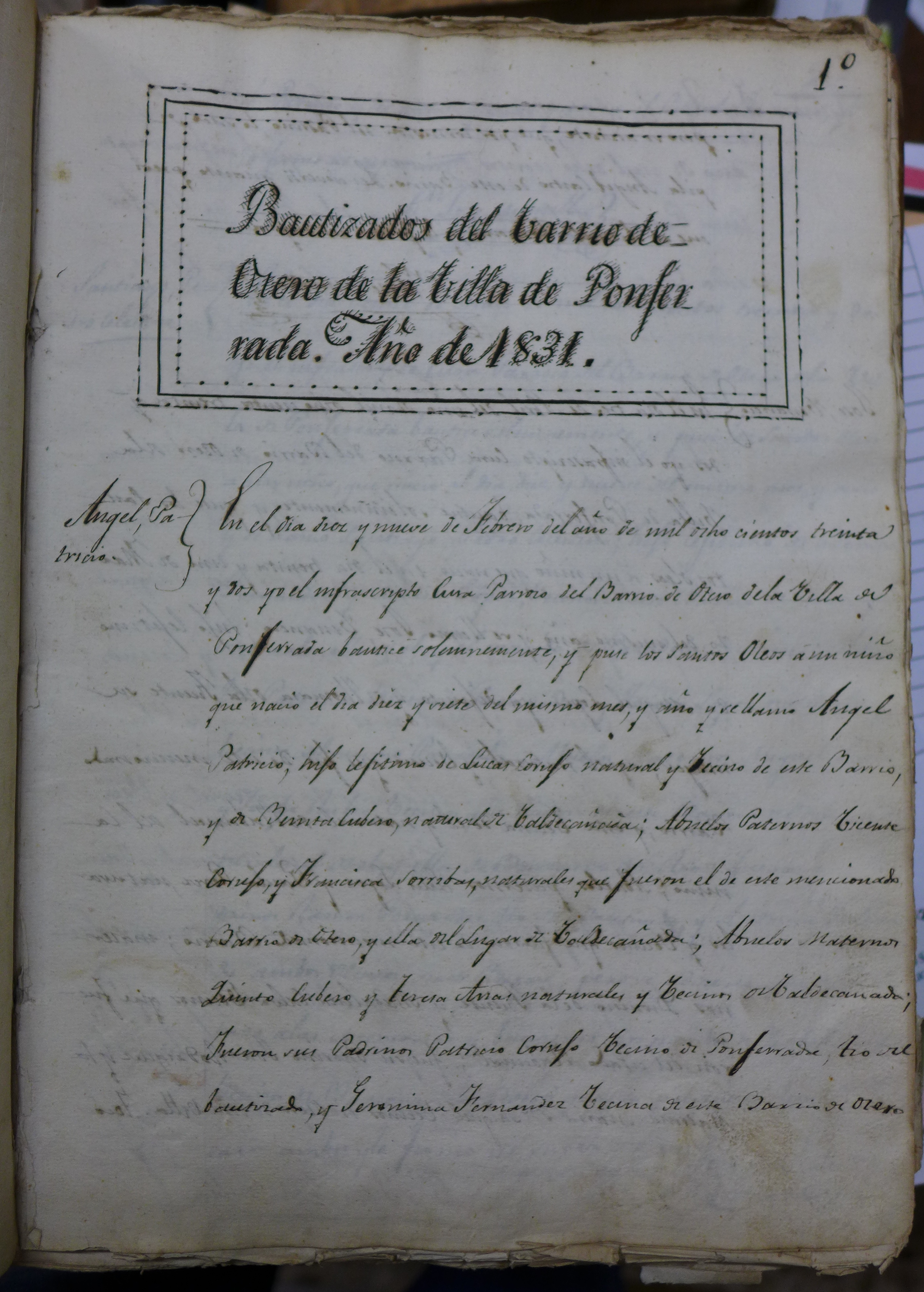 Libro de bautismos del barrio de Otero