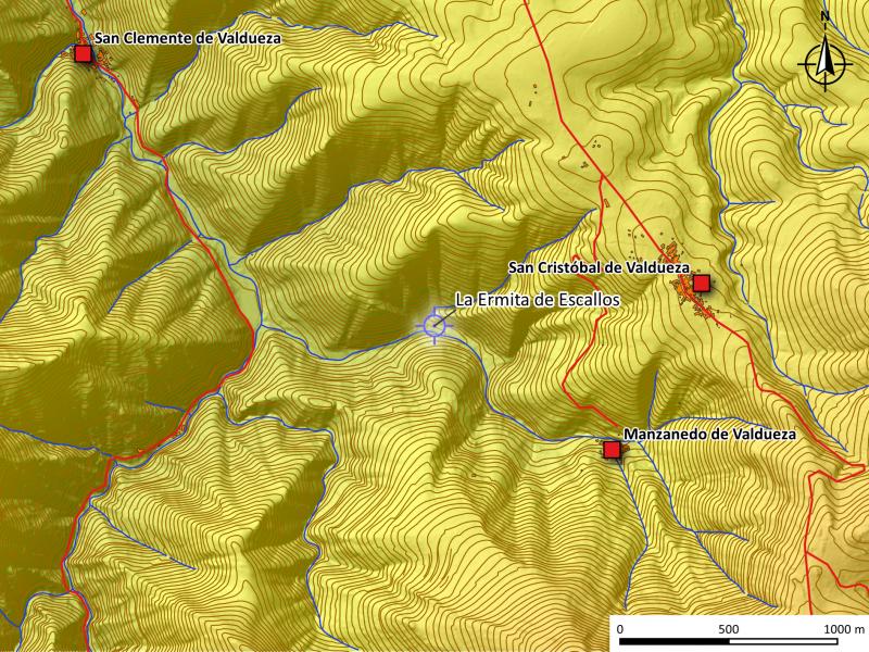 En las proximidades de la ermita hay una zona organizada mediante muros de cierre que posiblemente haya que poner en relación con actividades ganaderas o con alguna de las aldeas actualmente desaparecidas que se ponen en relación con la ermita (entonces iglesia) de Santa María: Valdescayos y La Cisterna.