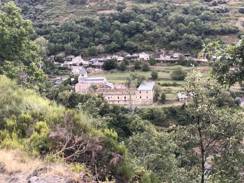 Desde el fondo del aparcamiento ubicado a la entrada de Montes de Valdueza, donde habría que dejar los vehículos, hay que continuar a pie siguiendo las indicaciones existentes en dirección oeste. La zona rehabilitada del antiguo monasterio (la más próxima al aparcamiento) se encuentra a menos de 100 m.