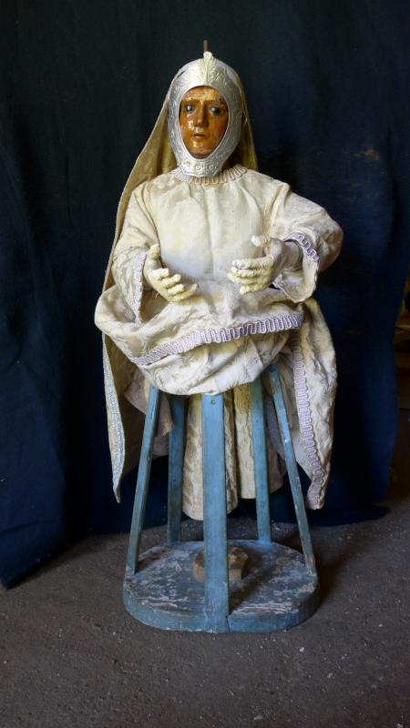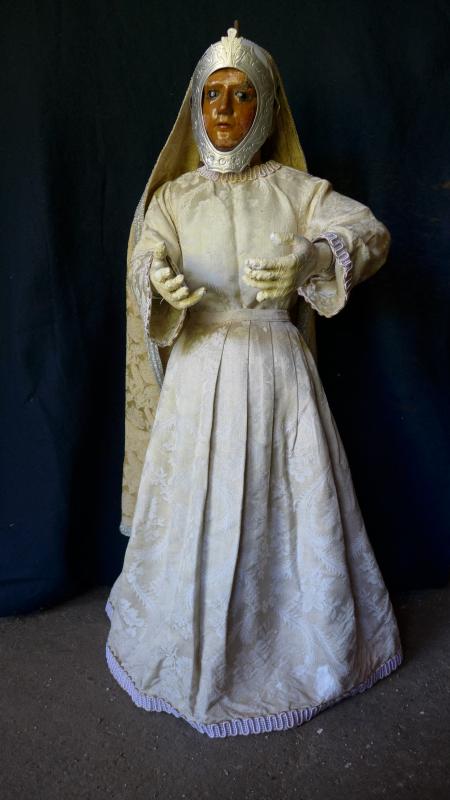 Imagen de vestir de factura relativamente moderna, aunque con un grosero repinte aplicado en tiempos recientes. Como en casi todas las de su clase, se compone de un armazón de carpintería, siendo únicamente de talla las manos y la cabeza. Su factura resulta tremendamente popular, a juzgar por la hechura de la propia estructura para vestir. Sus manos, muy deterioradas, se han rehecho casi en su totalidad a base de vendas de escayola. El rostro denota cierta antigüedad en su labra, quizá del siglo XVIII, aunque con posterioridad se intervino colocándole ojos de vidrio y repintándolo en su totalidad.