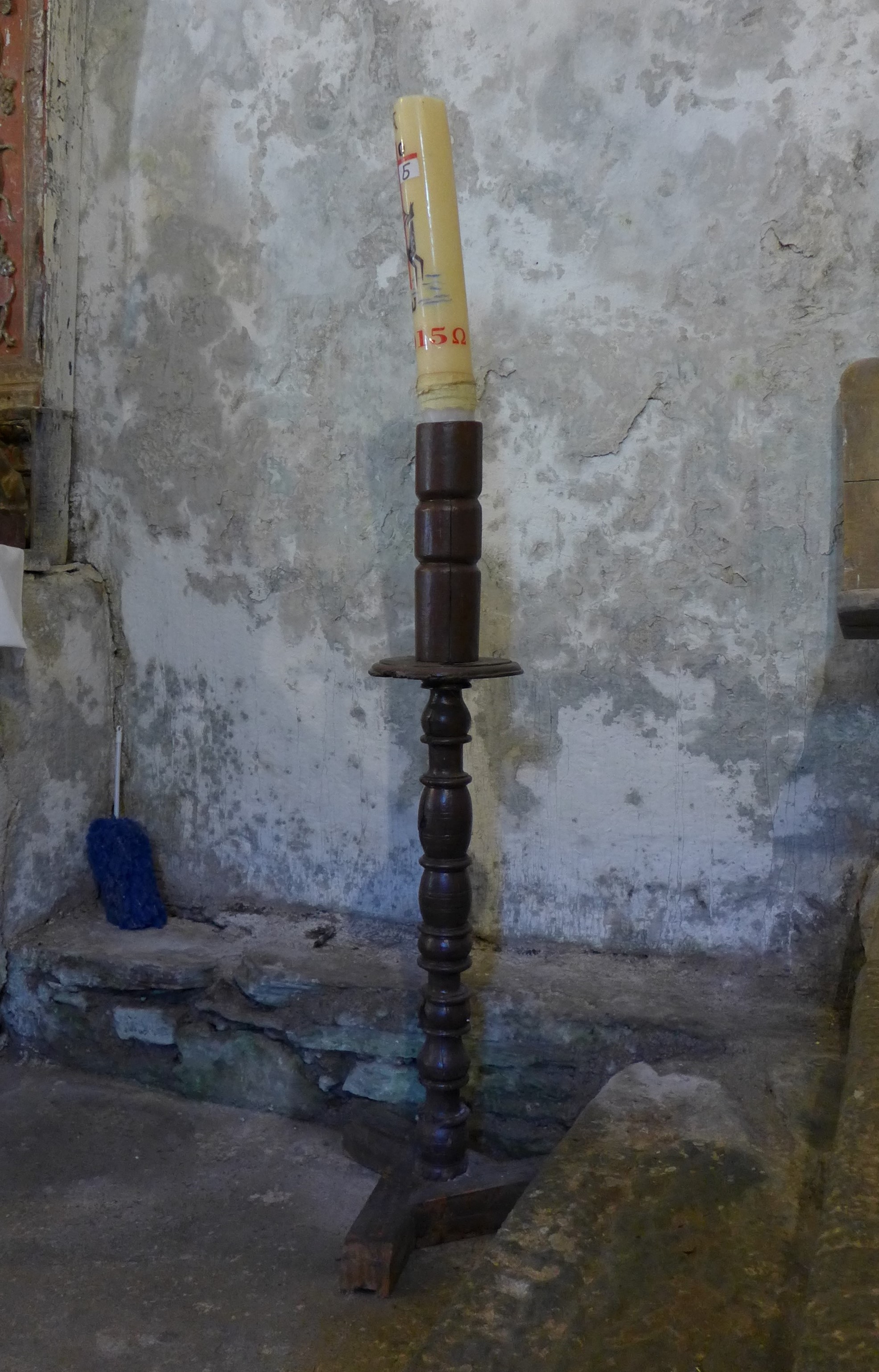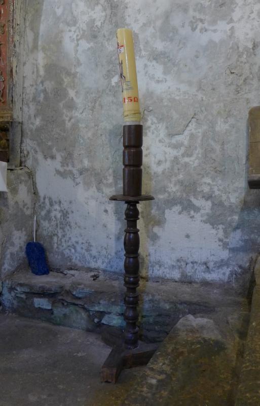 Moderno hachero de astil torneado, pie tripartito con bordes moldurados y cañón sobre moldura plana y saliente. Todo él es una sucesión de cuellos cóncavo convexos y anillos de distinto tamaño que confieren cierta gracia al conjunto.