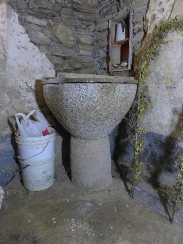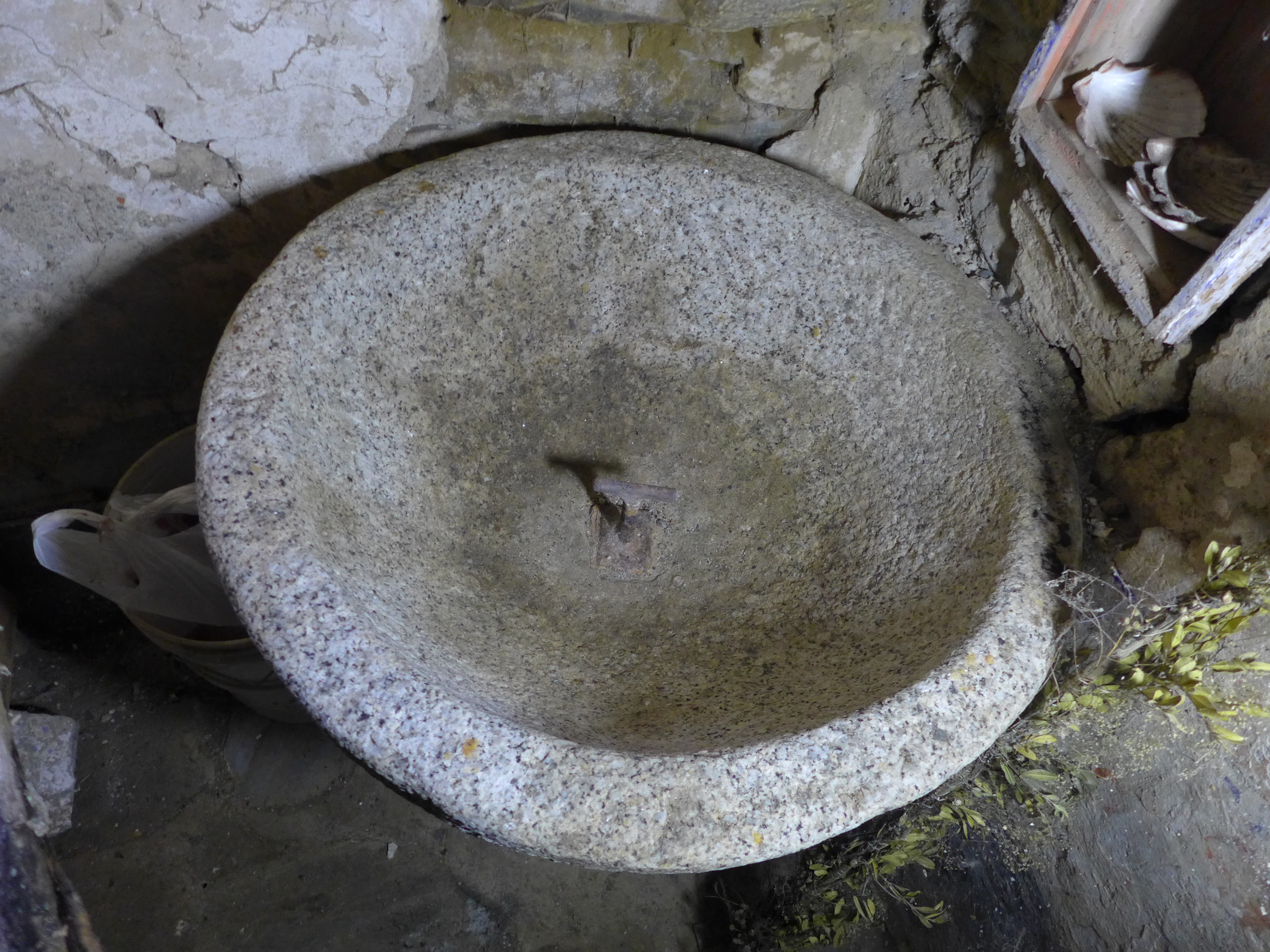 Se conserva en la sacristía del templo. Es una pila compuesta de pie cilíndrico y copa lisa de perfil troncocónico. Carece de cualquier tipo de adorno y ambas partes se muestran totalmente lisas. Conserva tapadera de madera.