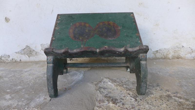 Tablero inclinado sostenido por dos pies de perfil ondulado. Similar recorte tiene la pieza horizontal que sirve para sostener el libro litúrgico que habría de acoger. Se trata de un mueble sencillo y funcional, de factura popular como su policromía.
