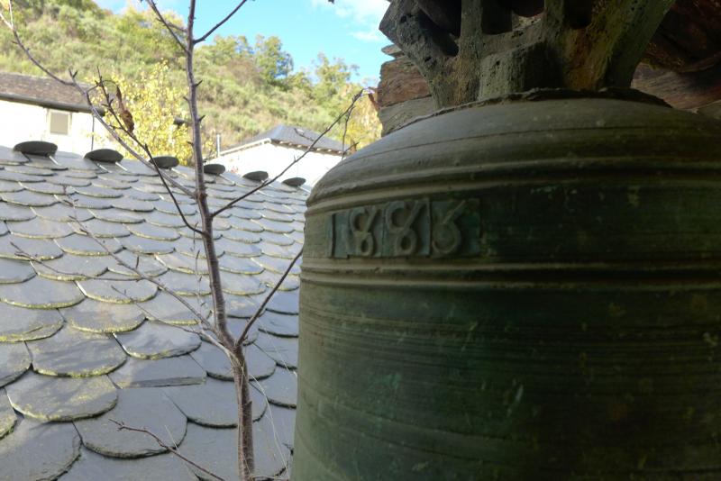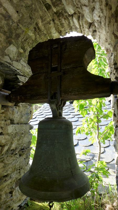 Campana de perfil esquilonado. Su tercio se decora con dos parejas de cordones, y el medio pie con otros tres. En el medio se exhibe una cruz de calvario (con seis gradas) compuesta con moldes de estrellas de cuatro puntas. Conserva el badajo. El yugo es de madera, meritorio, con sus herrajes.