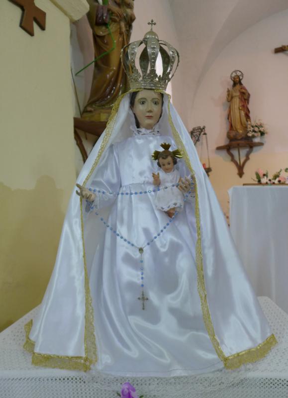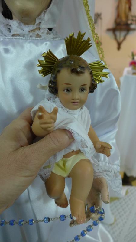 El Niño, respuesto y de escayola, se desconoce si sustituye a otro anterior o es una adición de la devoción contemporánea, pues no es lo propio de la Virgen del Rosario presentarse con el Niño.