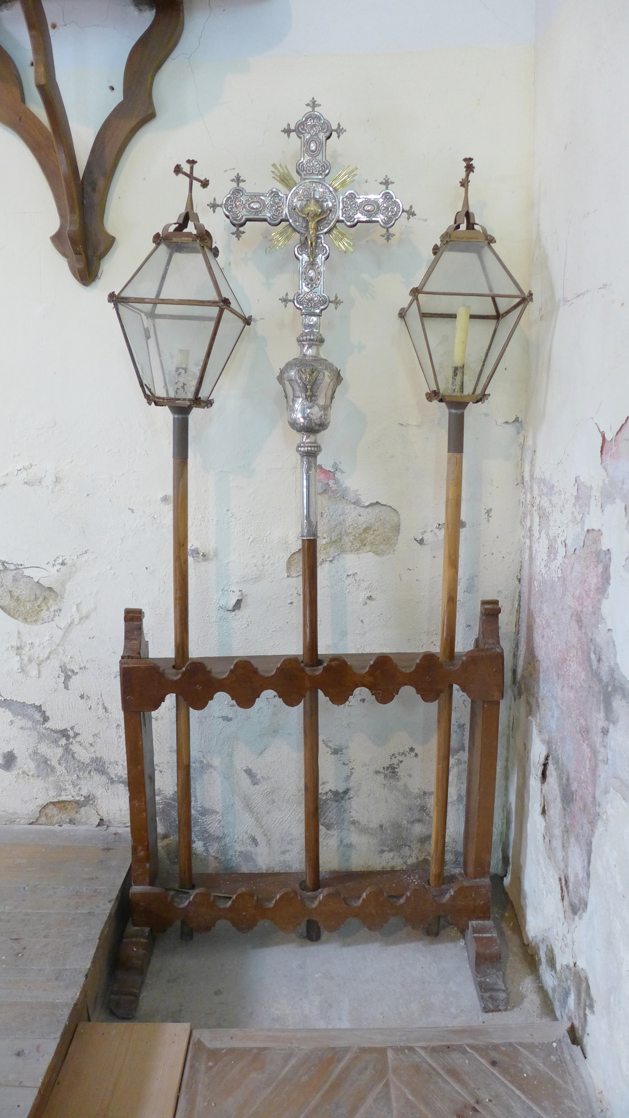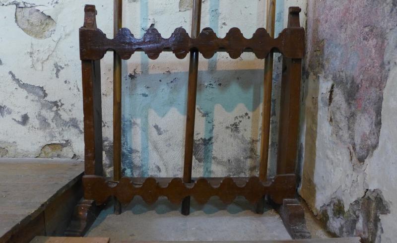 Mueble funcional para colocar tres hachas. Se compone de dos pies moldurados, dos vástagos laterales y otros tantos travesaños lisos.