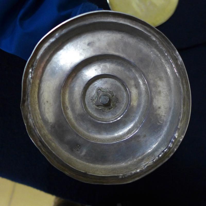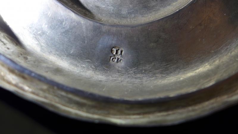 Dispone de punzones y marcas, tanto en el cáliz como en la patena.