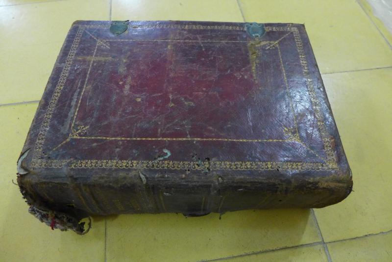 Parece que no es suya la encuadernación, de tabla forrada y restos de herrajes.