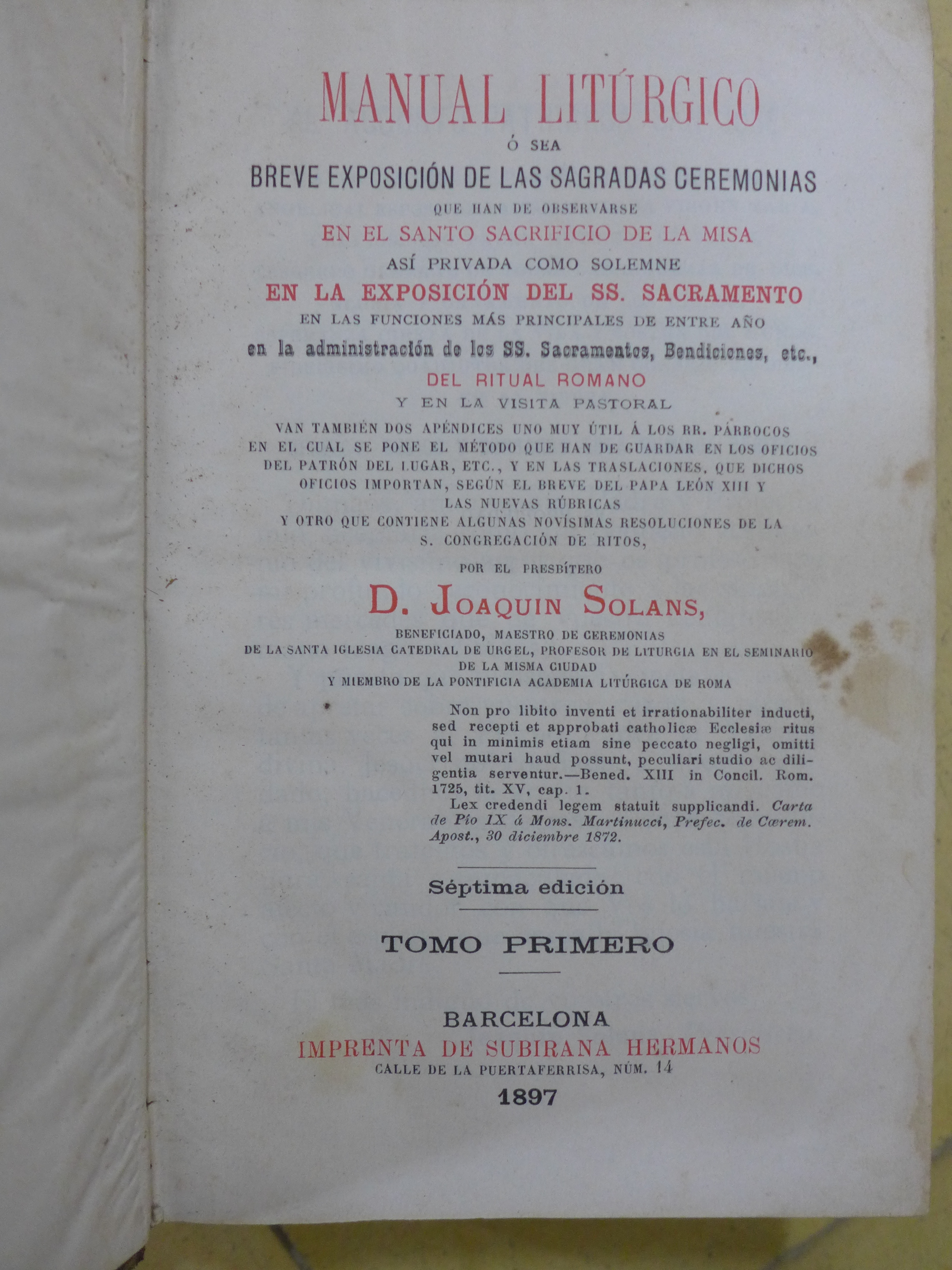 Barcelona: Imprenta de Subirana hermanos