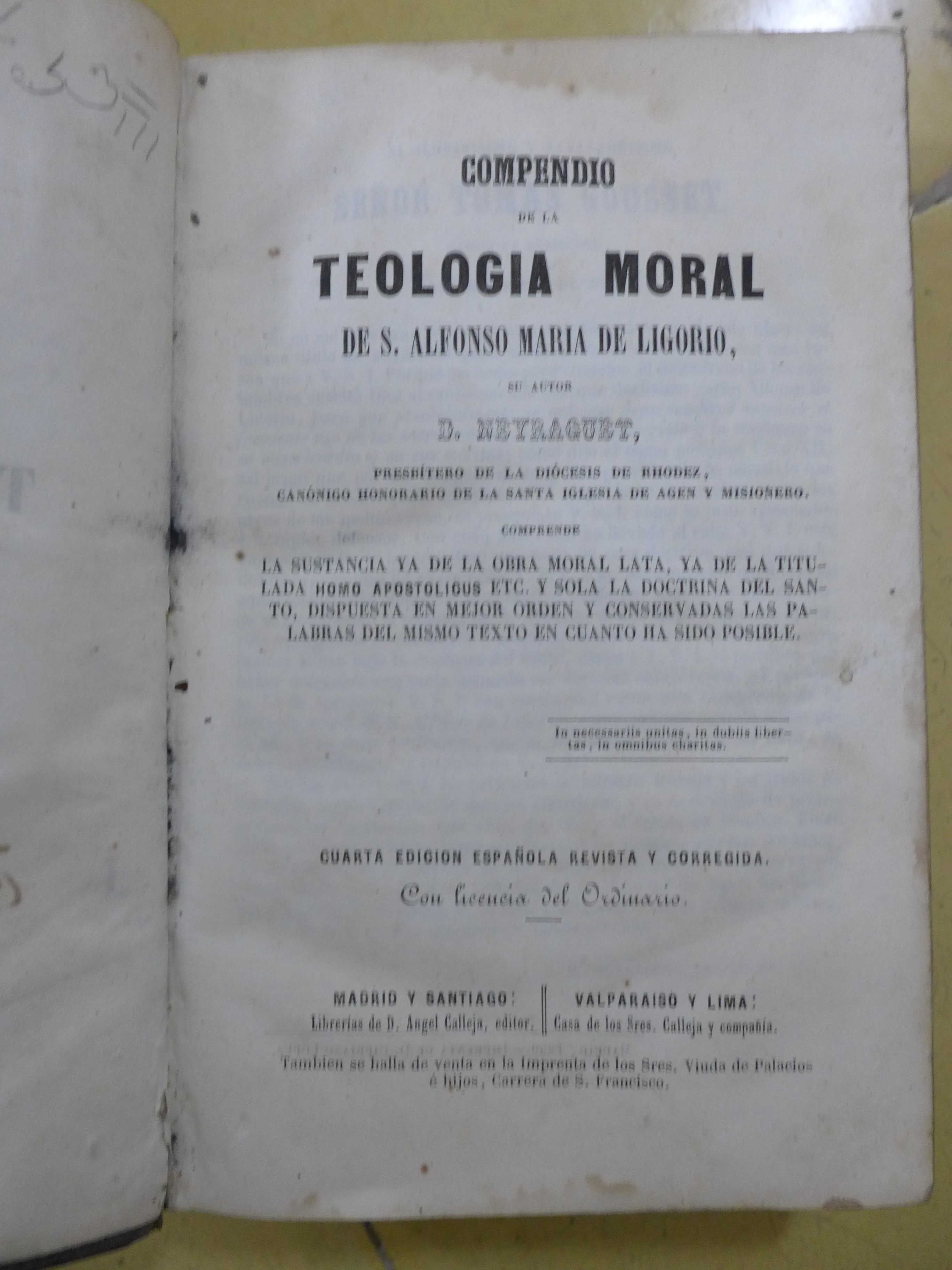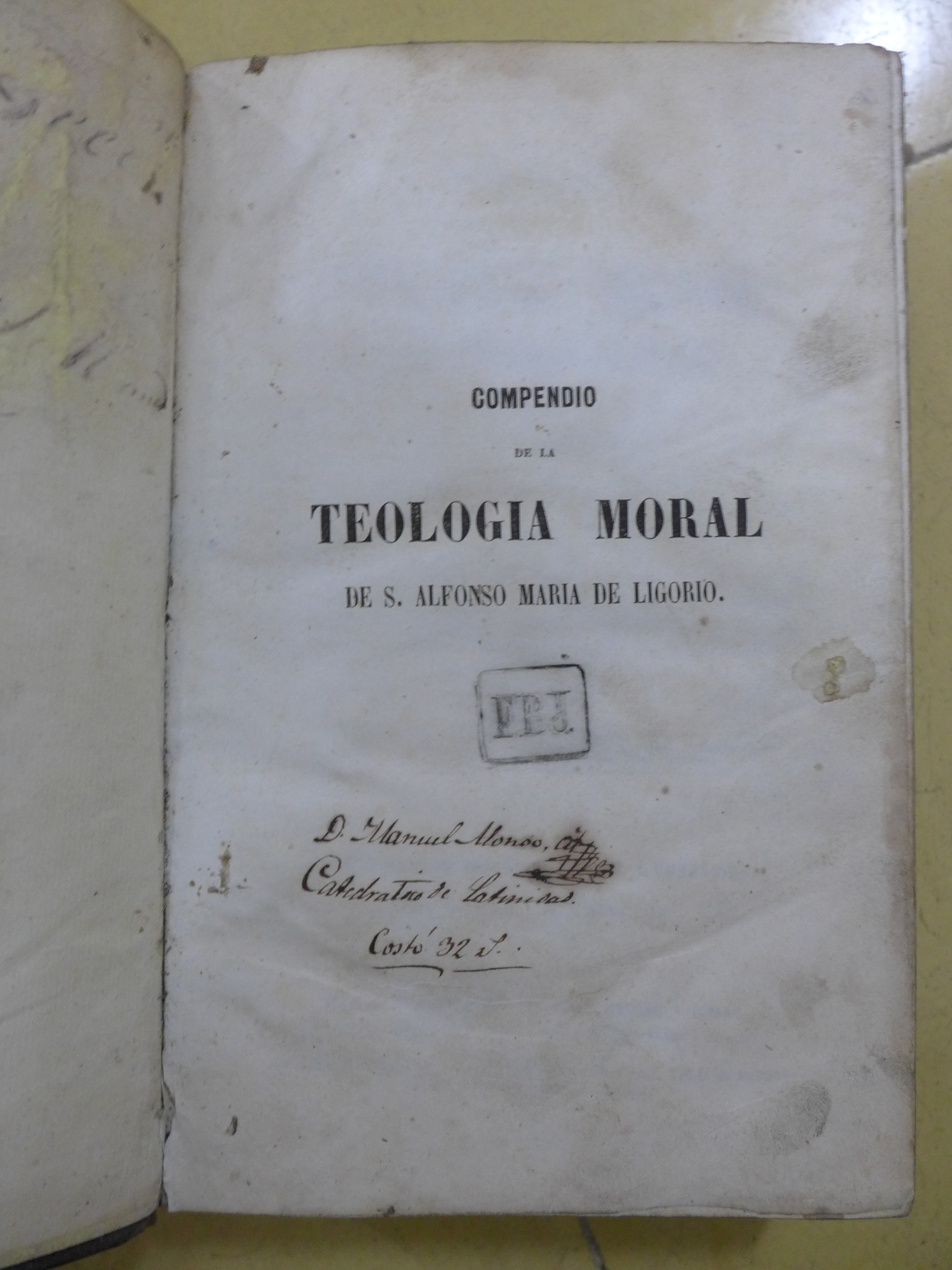 Libro impreso: Compendio de teología moral de san Alfonso María de Ligorio