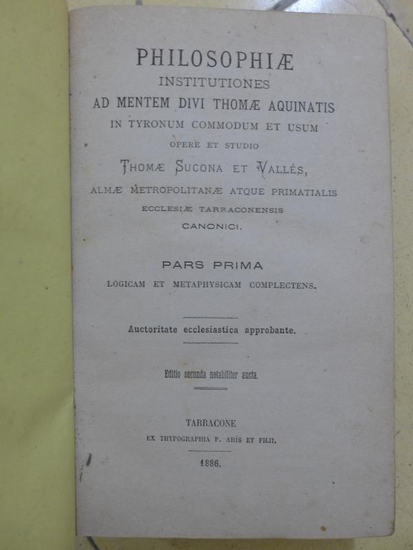 Libro impreso: Philosophiae institutiones ad mentes divi Thomae Aquinatis