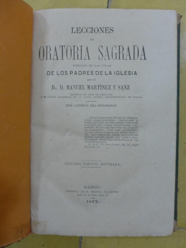 Libro impreso: Lecciones de oratoria sagrada tomadas de las obras de los padres de la Iglesia