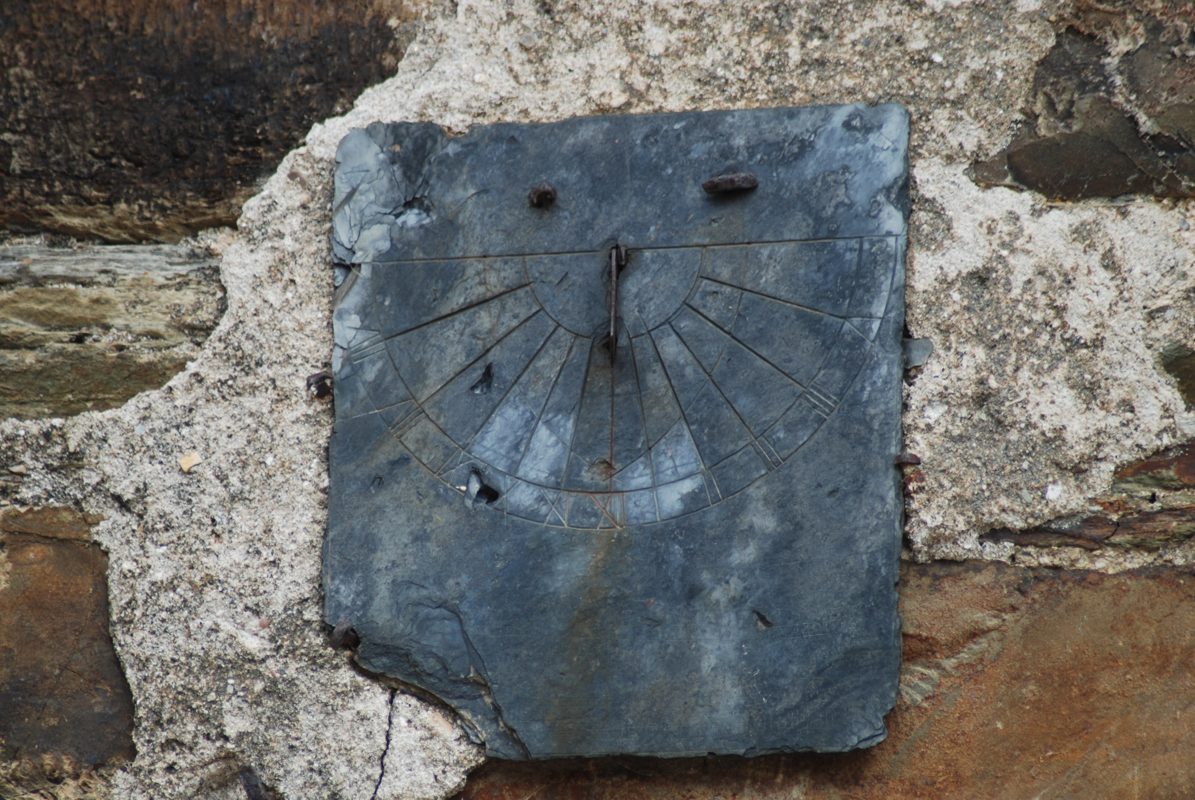 Reloj semicircular realizado sobre una laja de pizarra cuadrada. Conserva gnomon metálico (una chapa metálica triangular). Se sujeta con cinco anclajes metálicos distribuidos por su perímetro, habiendo perdido alguno más. Traza vertical a levante y presenta las horas en números romanos de VI de la mañana a VI de la tarde. La serie de números se lee desde el interior, si bien en su mitad izquierda (según se mira) los números VII y VIII se presentan invertidos.