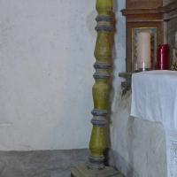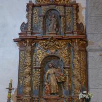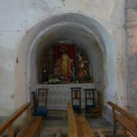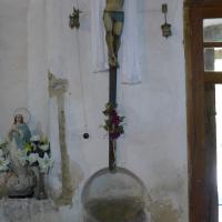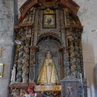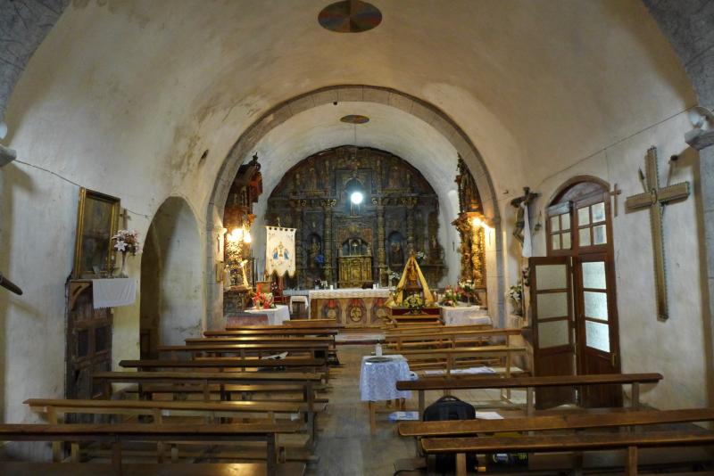 El interior es bien interesante y se cubre todo él con bóveda de cañón jalonado por arcos fajones de medio punto. Conserva un rico conjunto de bienes muebles, destacado varios retablos de cronología barroca, especialmente el mayor y sus colaterales. También se ha de llamar la atención sobre una imagen mariana de cronología medieval