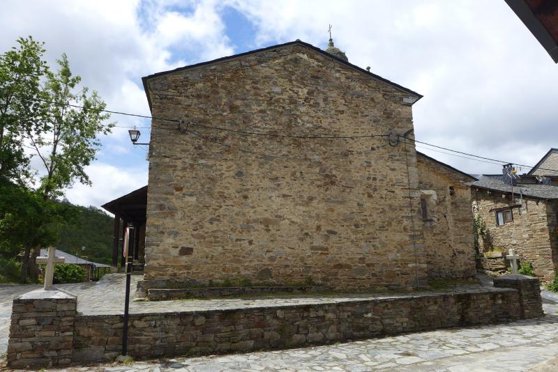 Iglesia de nave única con cabecera cuadrangular de testero plano. El edificio actual conserva restos del primitivo edificio románico, consagrado hacia 1144. Su portada meridional, renacentista, se protege por un moderno pórtico y en el costado contrario se yergue la torre, rectangular con cubierta pétrea.