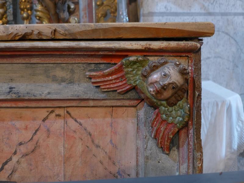Le falta una de las cabezas de querubes que decoran su marco