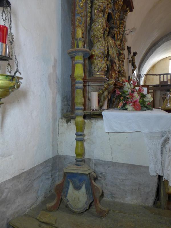 Hachero de vástago torneado con molduras de distintos tamaños y pie triangular construido a partir de placas mixtilíneas con remates tornapunteados y asimismo moldurados.